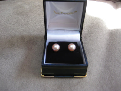This is a photo of my stunning freshwater lavender pearl earrings, valued at $180.00.